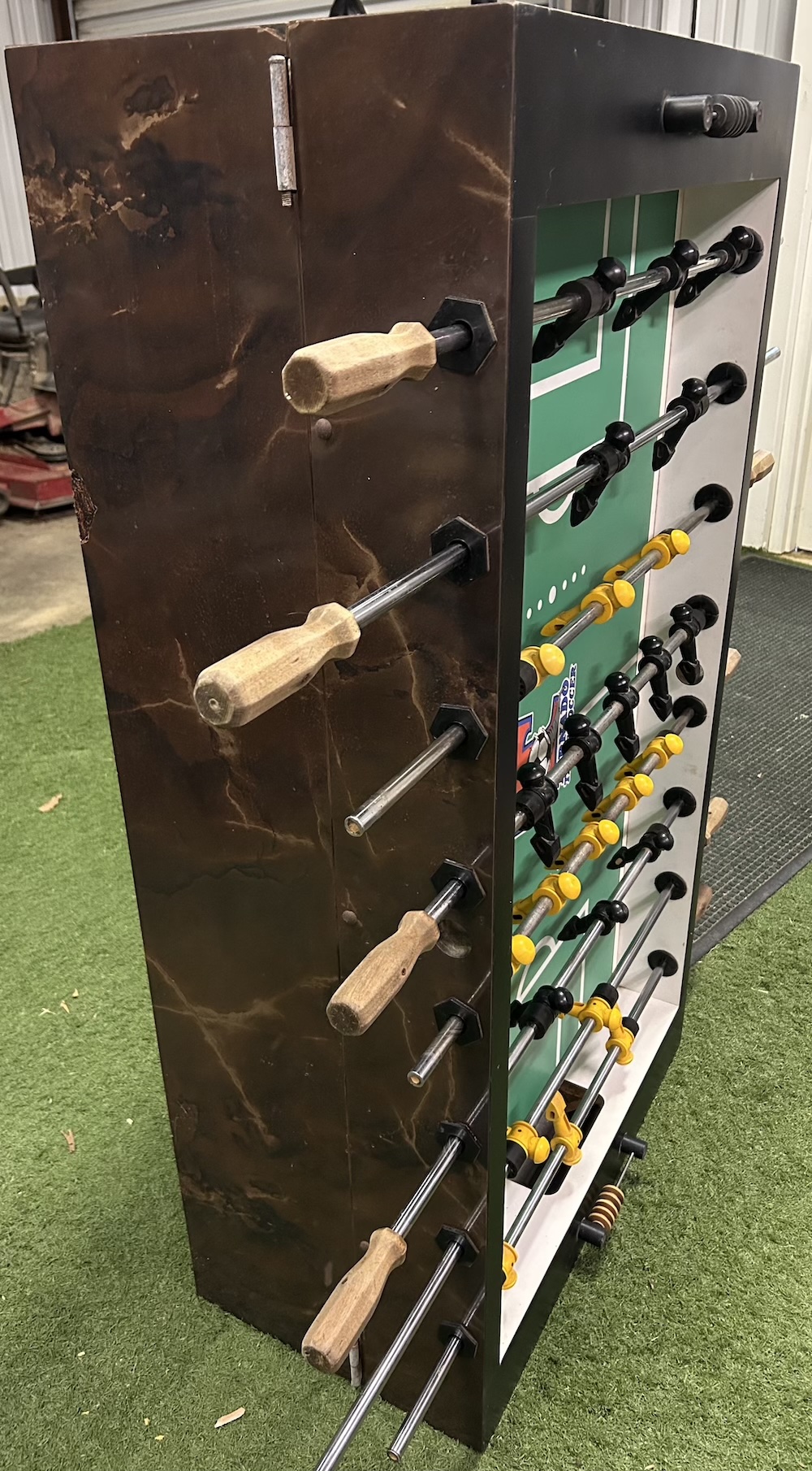 - ...cabinet has nick, scratches, and places of chipped laminate. Rods are near new while playing surfaces are used but good condition. *See more: [photo #2] [3].